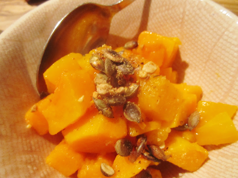 't Is het seizoen dus een beetje pompoen kan nooit kwaad. Heerlijk zacht wou ik zeggen maar ik werd in snelheid geklopt. Vriendin liet weten dat ze de bite van de pompoen wel wist te appreciëren. Zacht en toch met een beet aan. Zou het aan de pitjes gelegen hebben misschien? Smaken deed het in ieder geval.