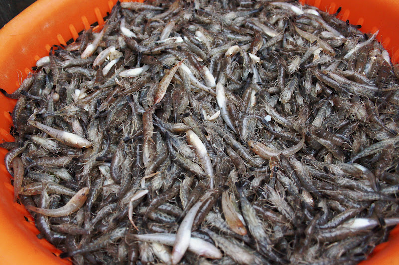 Na het koken worden de garnalen handmatig ontdaan van ongewenste restjes, een verdwaalde krabbenpoot of meegekookt minivisje, ik zeg maar iets. Het siert een chef als