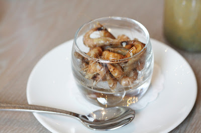 Hof van Cleve kost. De restauranttrend van vorig jaar indachtig - levende garnalen - waren we nu op een schat gezeten. En als de mogelijkheid zich dan voordoet om gratis enkele levende garnalen, recht uit zee te degusteren, dan laat je die kans toch niet liggen? Een emmertje voor mijnheer?