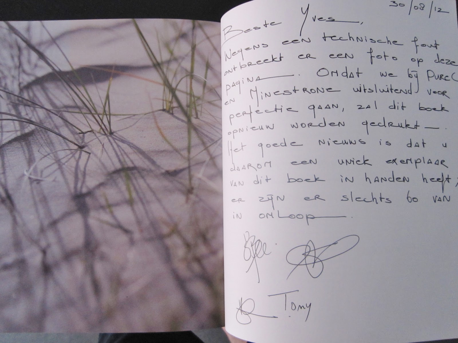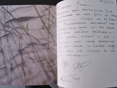 Slecht nieuws, goed nieuws, het is maar hoe je het bekijkt! Het slechte nieuws, dat was dat het boek niet nu, maar pas vanaf 15 oktober zou uitkomen. De schuld van een druktechnische fout op pagina 205, een lege pagina waar een prachtfoto van Tony zou moeten prijken. Het boek zo op de markt brengen - ze hebben het overwogen - was uiteraard geen optie voor uitgeverij Minestrone, gekend voor boeken die steeds tot in de puntjes afgewerkt zijn. Opnieuw drukken dan maar, met het nodige uitstel als gevolg. Slecht nieuws dus!